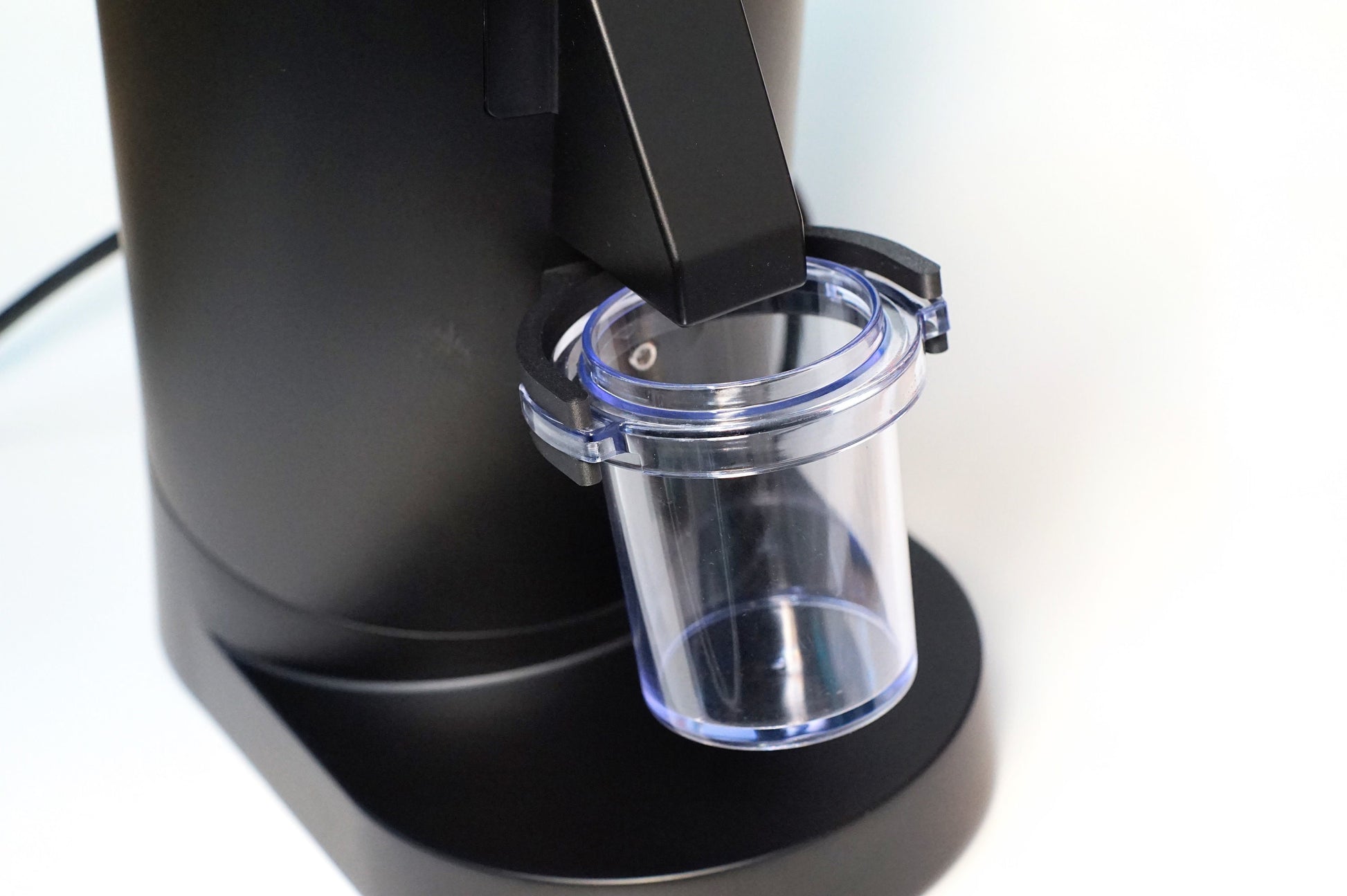 Compared to the original dosing cup holder, this one will reduce the distance from the cup to the exit chute significantly. Therefore, less coffee grinds will escape the dosing cup opening and less cleaning is needed after grinding.