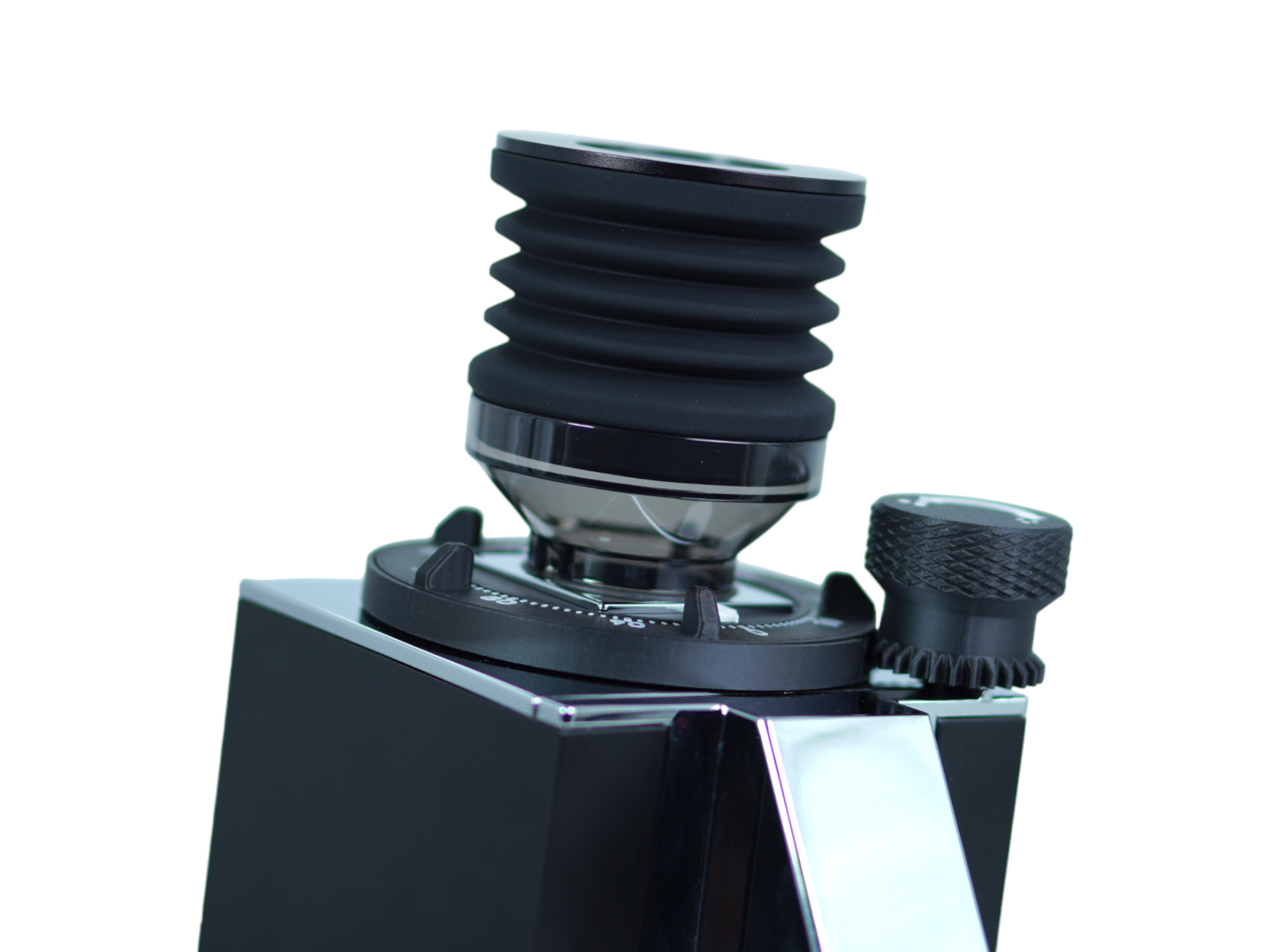 Single dose hopper with bellow for the Eureka Mignon coffee grinder.