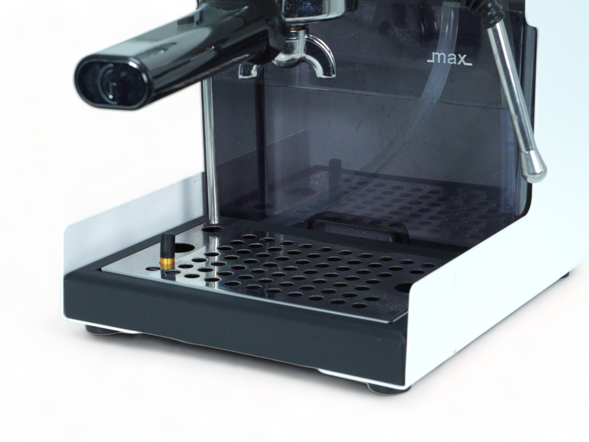 The Gaggia Classic Pro is a legendary coffee maker with a long-lasting history. However, the small clearance between the portafilter and the drip tray can be a challenge. To address this issue, we have designed a low-profile drip tray that adds significantly more room for a scale and a mug. The tray also features a water level float that indicates when the tray needs to be emptied, preventing overflow.