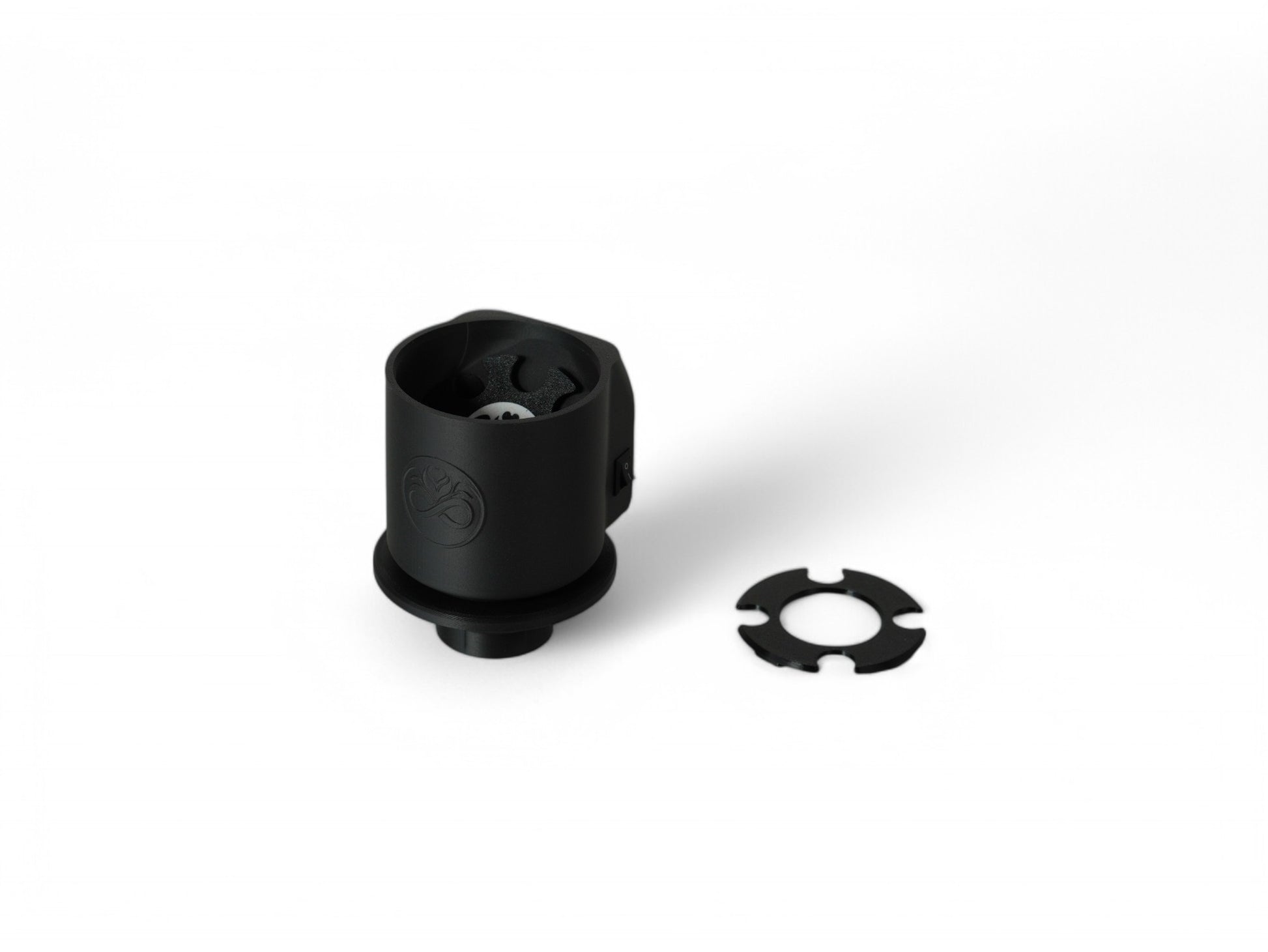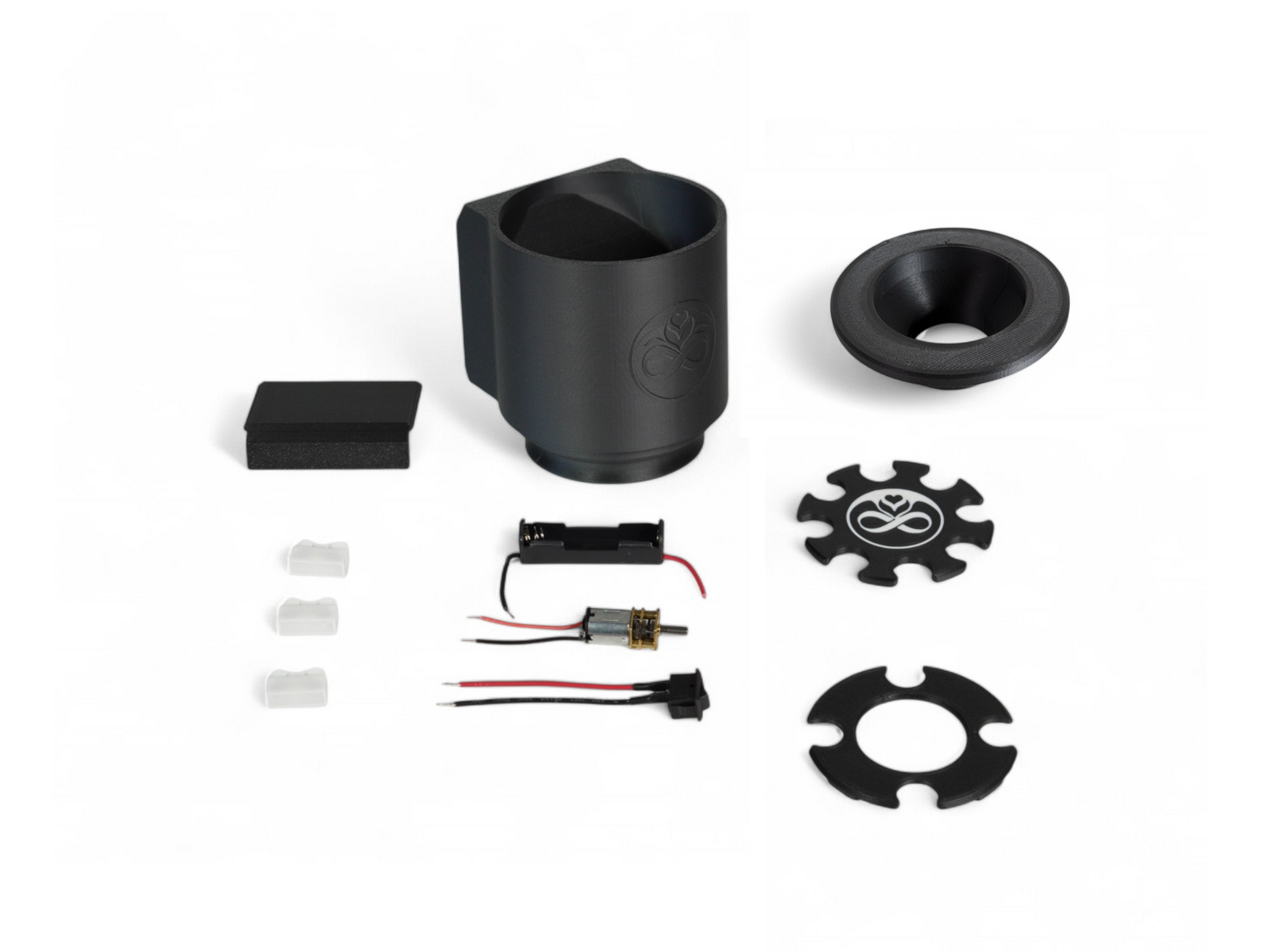 The Electric Slow Feeder is manufactured using 3D printing technology, ensuring precision, durability, and a custom fit. It attaches securely to the metallic funnel with a precise, press-fit. The stock single-dose bellow can be connected on top of the slow feeder to minimize retention.