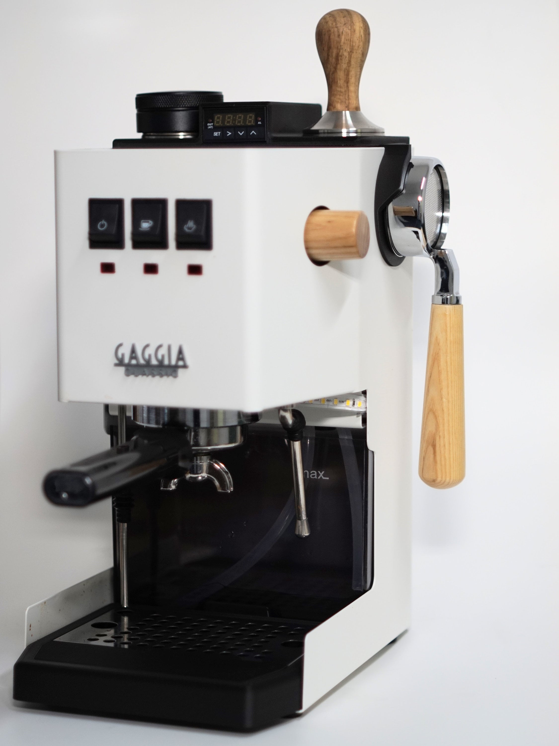 Most of the enthusiasts own more than one portafilter. Instead of wasting valuable space in a drawer, the beautiful spare portafilter should be displayed with the machine. Therefore, I have designed a portafilter holder for the Gaggia Classic Pro. With this 3D printed holder, the portafilter can be changed quickly and securely.